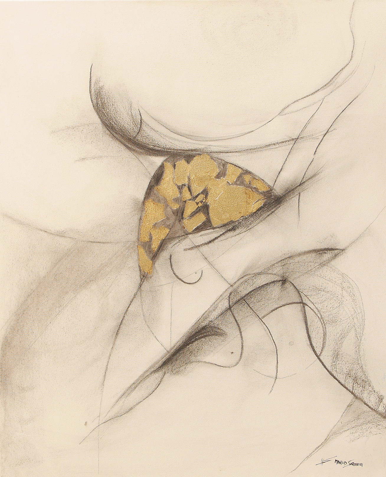 Peinture sur toile. Technique mixte, graphite, feuille d'or.60x73cm700,00 € -